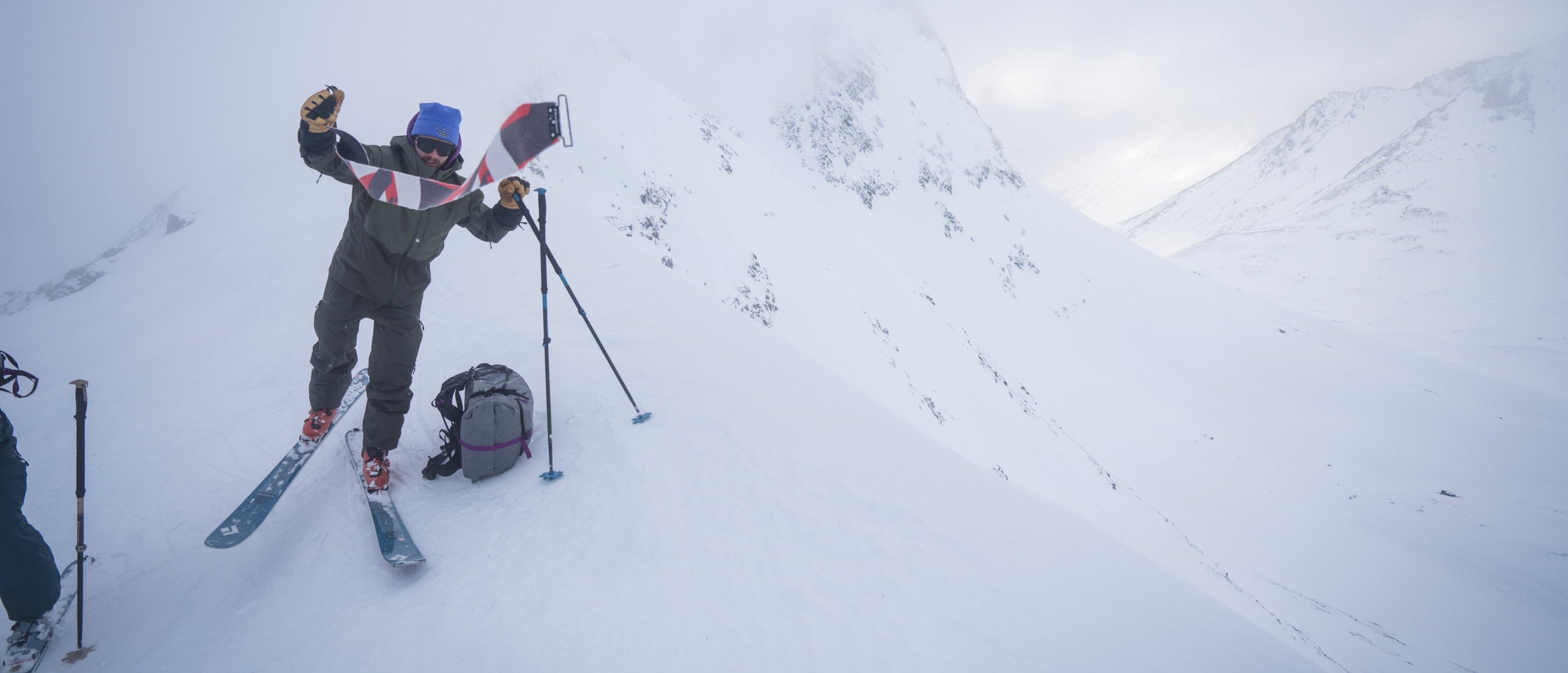 A ski strap is most useful for a catastrophic field failure: if your skins rip and a tip or tail piece breaks off, or the glue on the skins finally fails. A ski strap will reduce glide, but it’s a better option than a loose climbing skin flapping around the skin track. Usually, a ski strap around the top and bottom of your skin is enough to keep the skin on. If a skin fails due to glue failure, having a strap at the top and then one directly in front of and then directly behind your bindings (where you get the most traction) can keep you on the skin track.
