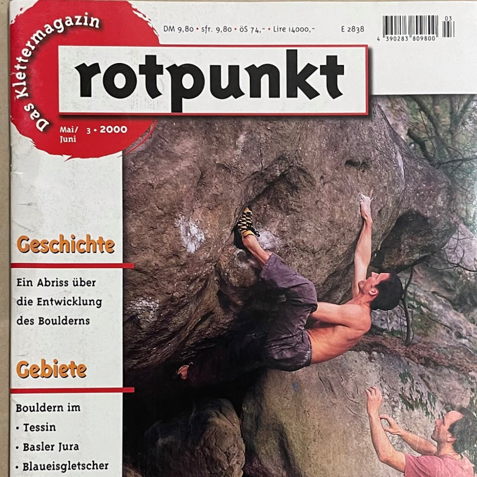 In 1996, I returned to Chironico with Andreas Luisier and also explored the lower part, today referred to as “Rah Plats Plats.” Andreas marked some “new” boulders with small arrows like he was used to doing on the Basel Jura. A few years later, these arrows caught the attention of the Tresch brothers and my acquaintance with Fred Nicole closed the gap even further. The bouldering scene was still relatively small at the time. People knew about each other, bumped into each other and heard this and that from time to time. The first publication in the German-speaking areas came about in 2000 (Rotpunkt magazine 3/2000) and in French-speaking areas in 1999 (Rock n’Wall).