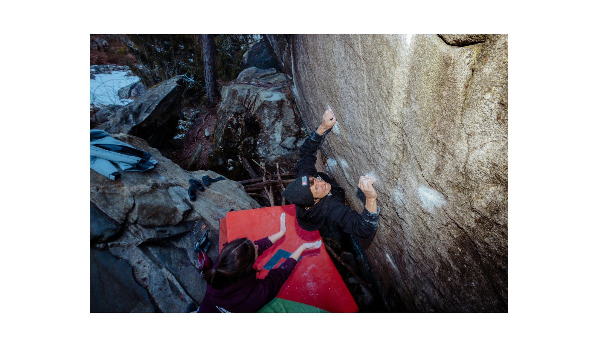 Jimmy soon climbed the left line on the bloc and called it “The New Abnormal”. It’s a great 8B+/C boulder but harder if you’re short. My main focus was more on the right exit of that boulder because size wasn’t a real factor for that line.