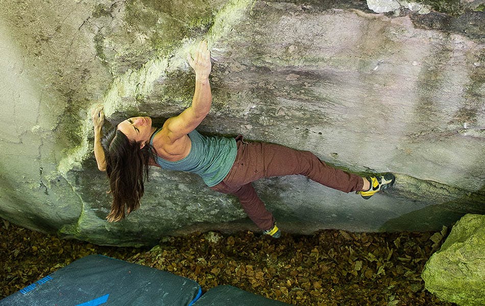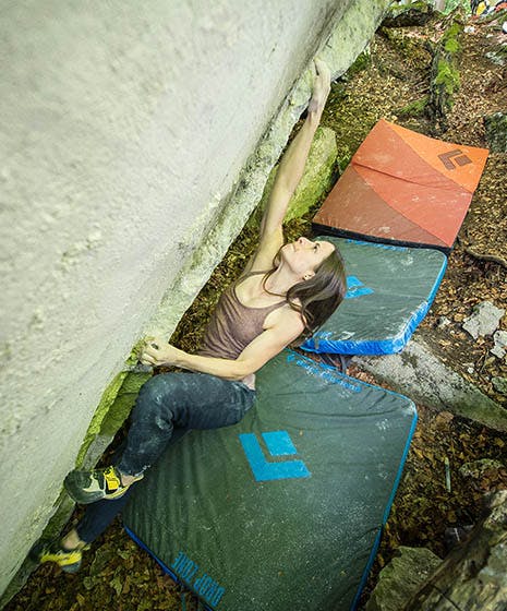 Au final, j'ai mis pas mal de temps à découvrir si je pouvais, et comment, réaliser ces mouvements. La manière dont Franz Widmer, Fred Nicole ou Kevin Heininger ont fait le bloc ne marchait tout simplement pas pour moi. Je mesure 5’2" et j'ai une envergure négative. Le soi-disant Saddam hold qu'ils utilisaient, je peux le maintenir sans problème, mais ça ne m'a pas aidé à progresser sur le bloc.