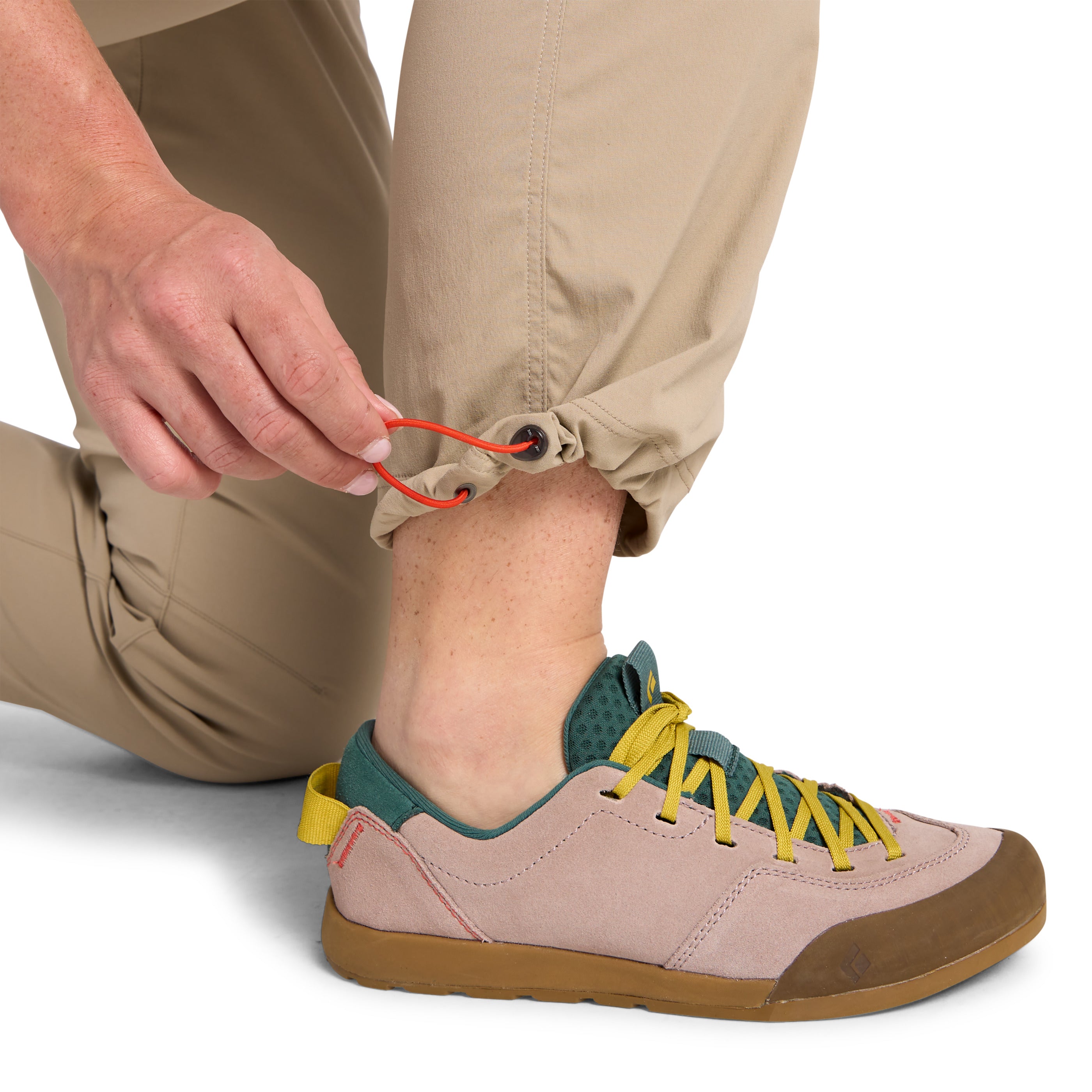 Conçu pour une mobilité maximale, le pantalon Pursuit est fabriqué en nylon stretch bi-directionnel traité DWR sans PFC. Ce tissu offre la durabilité et la liberté de mouvements nécessaires, que ce soit en randonnée toute la journée, lors d’un long road-trip, ou pour vos sessions en falaise. De nombreux détails sont axés sur la liberté de mouvements : gousset à l'entrejambe, genoux préformés pour les prises pied-main et les passages d’un bloc à un autre, cordon de serrage au bas de jambe pour la pratique du vélo ou l'escalade. Une coupe droite simple avec deux poches avant multi-usages, deux poches arrière et une poche zippée sur la cuisse pour votre téléphone ou vos collations complètent les caractéristiques de ce pantalon polyvalent.