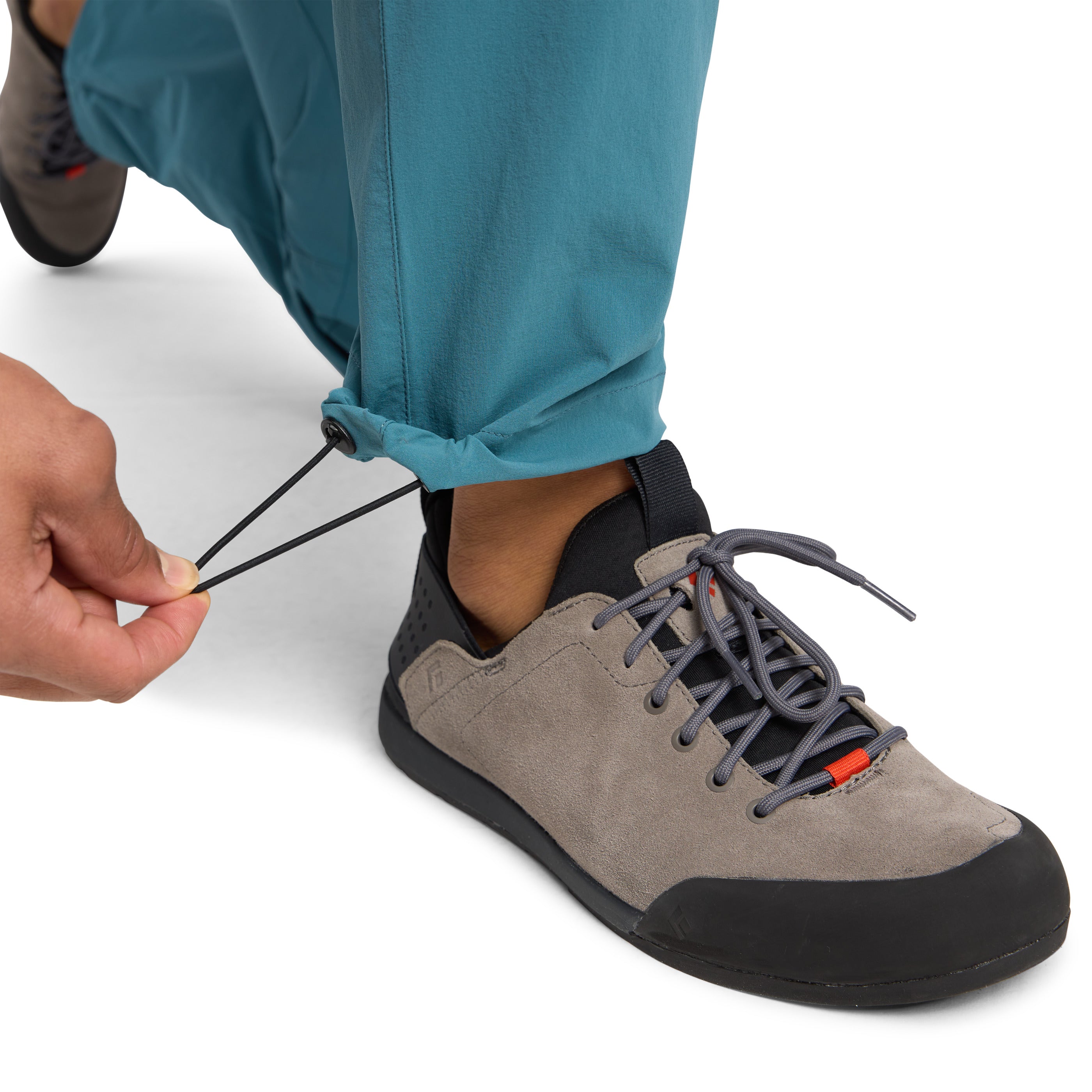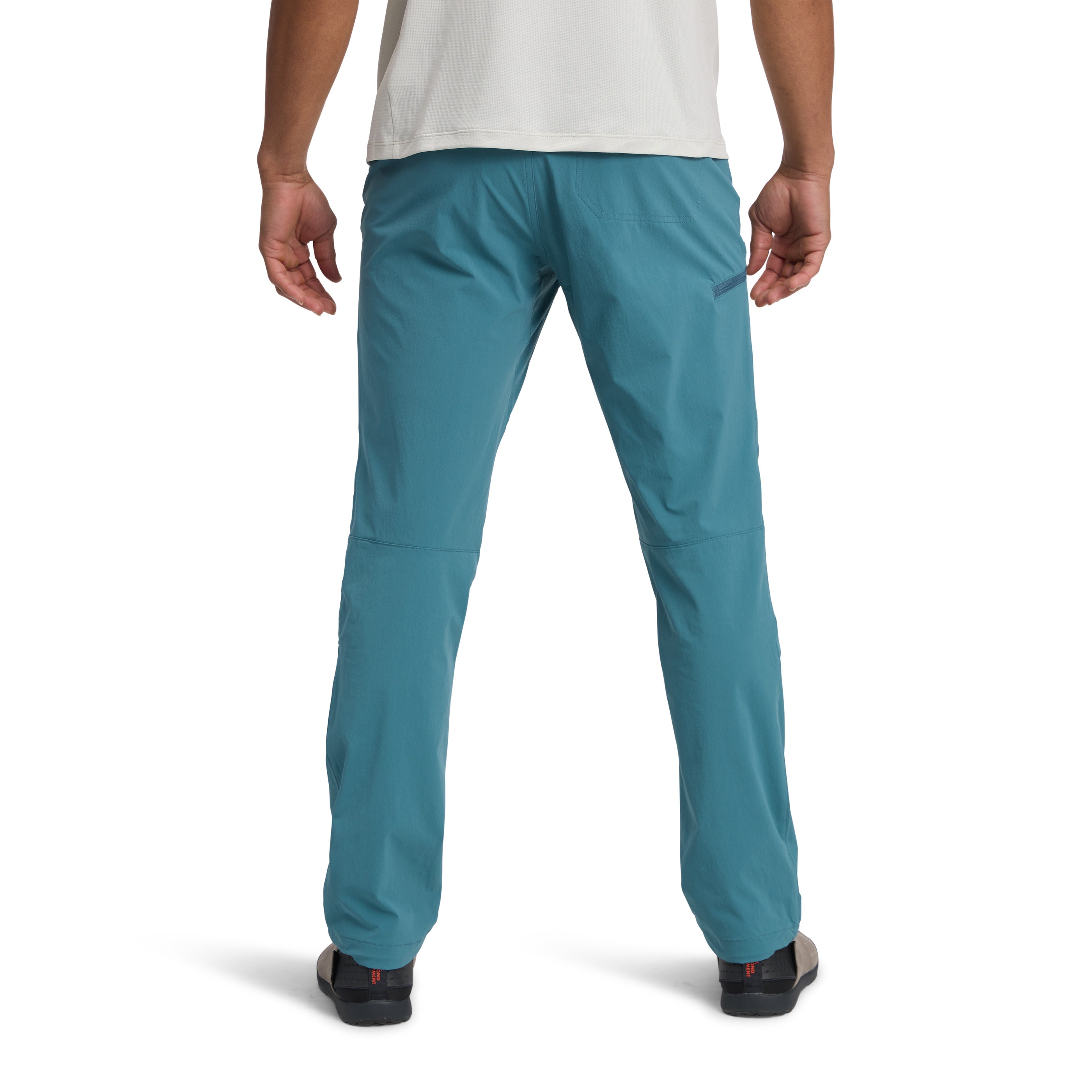 Designed with a single-weave, four-way stretch fabric, they pack down so you can shove them deep into the recesses of your pack, and the DWR treated finish gives you a layer of shelter when light precip rolls in. Two front drop-in pockets and one in back plus a zip thigh pocket for stashing essentials. Fit can be finetuned with cordlock adjustable hems and easy-to-adjust integrated webbing belt.