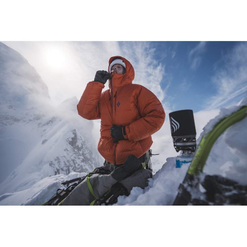 Built for the coldest conditions found on the planet, from expeditions to the Alaska Range and Antarctica, the Black Diamond Mission 6000M Down Parka was designed through months of field testing with mountain and ski guides. Its double-layer LCP-reinforced face fabric and 800-fill down make it a durable, high-altitude expedition staple.