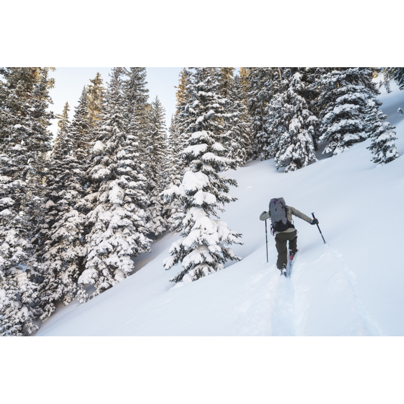 With 4-way stretch fabric and a movement-focused patterning for added mobility, this pant moves with you in the mountains. At the same time, the Recon’s 3L BD.dry™ waterproof/breathable solution keeps you dry on deep days. The Recon features two zippered thigh pockets (with a low-profile electronics pocket on the right side). A contoured waistband provides extra coverage and the ability to dial in fit with Velcro adjusts on the sides, snap closure, and belt loops. An integrated RECCO reflector adds a safety feature to the pants, while the instep patches guard against ski edges. The Recon’s offset side vents allow you to dump heat on the skin track, and the high-mounted snow gaiter keeps out the snow.