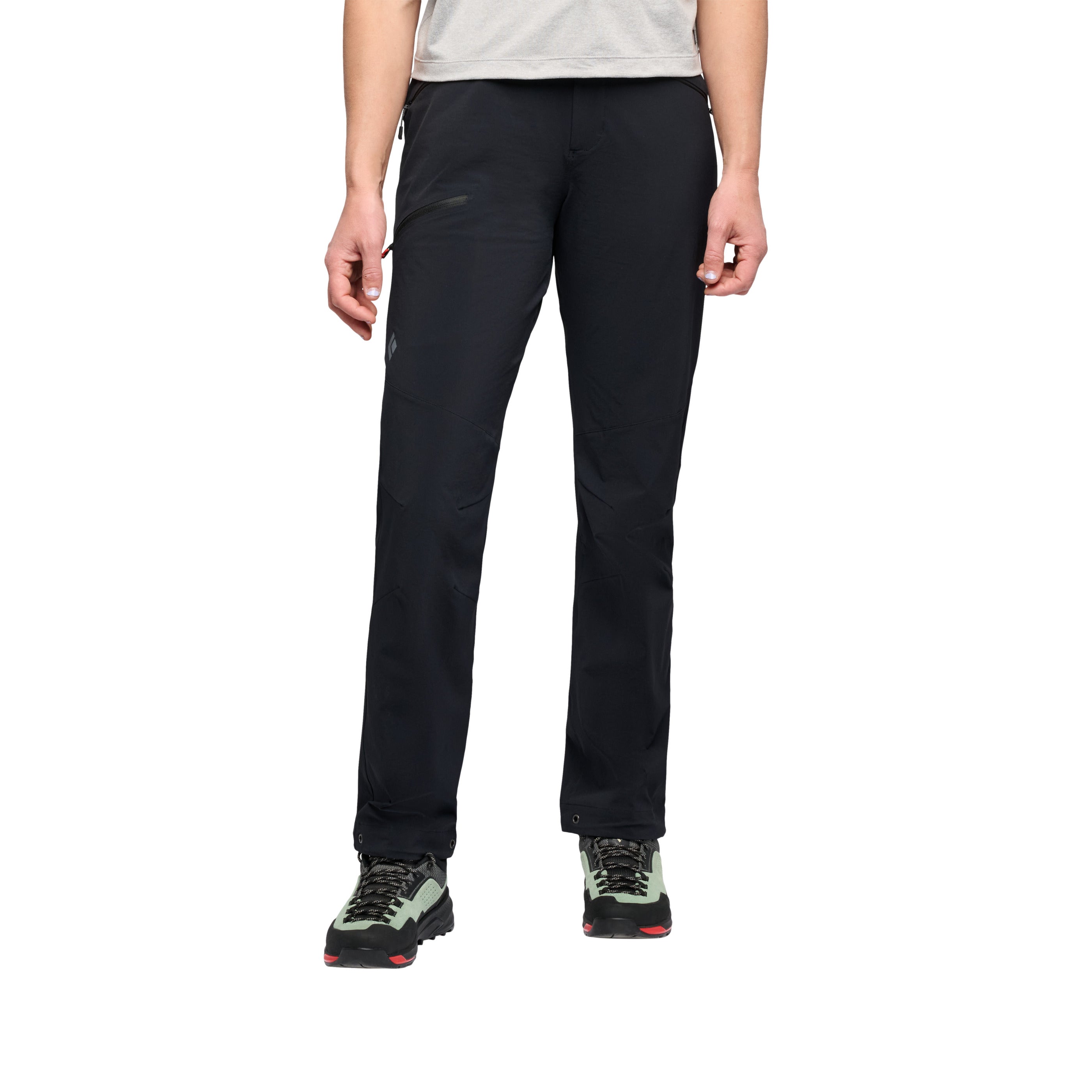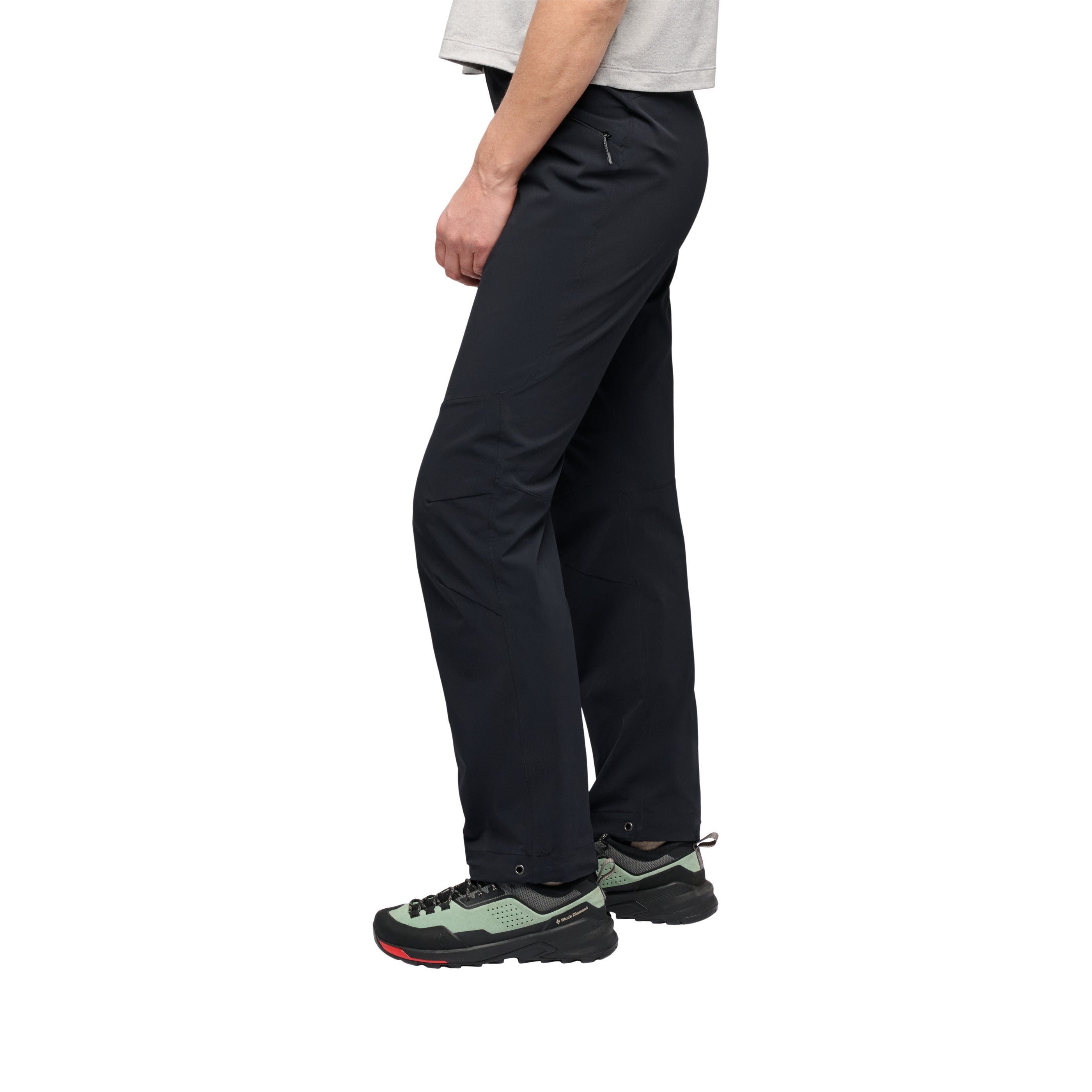 We’ve kept the same well-liked single-weave, four-way stretch fabric, but refined the fit and updated the pocketing and belt construction. They’re light and stretchy and can be worn on multi-day wall missions, all-day routes, and adventures that take you deep into the backcountry. A DWR treatment on the fabric protects against light precip and low-profile zip pockets hold the essentials. Fit can be finetuned with cordlock adjustable hems and an easy-to-adjust integrated webbing belt.
