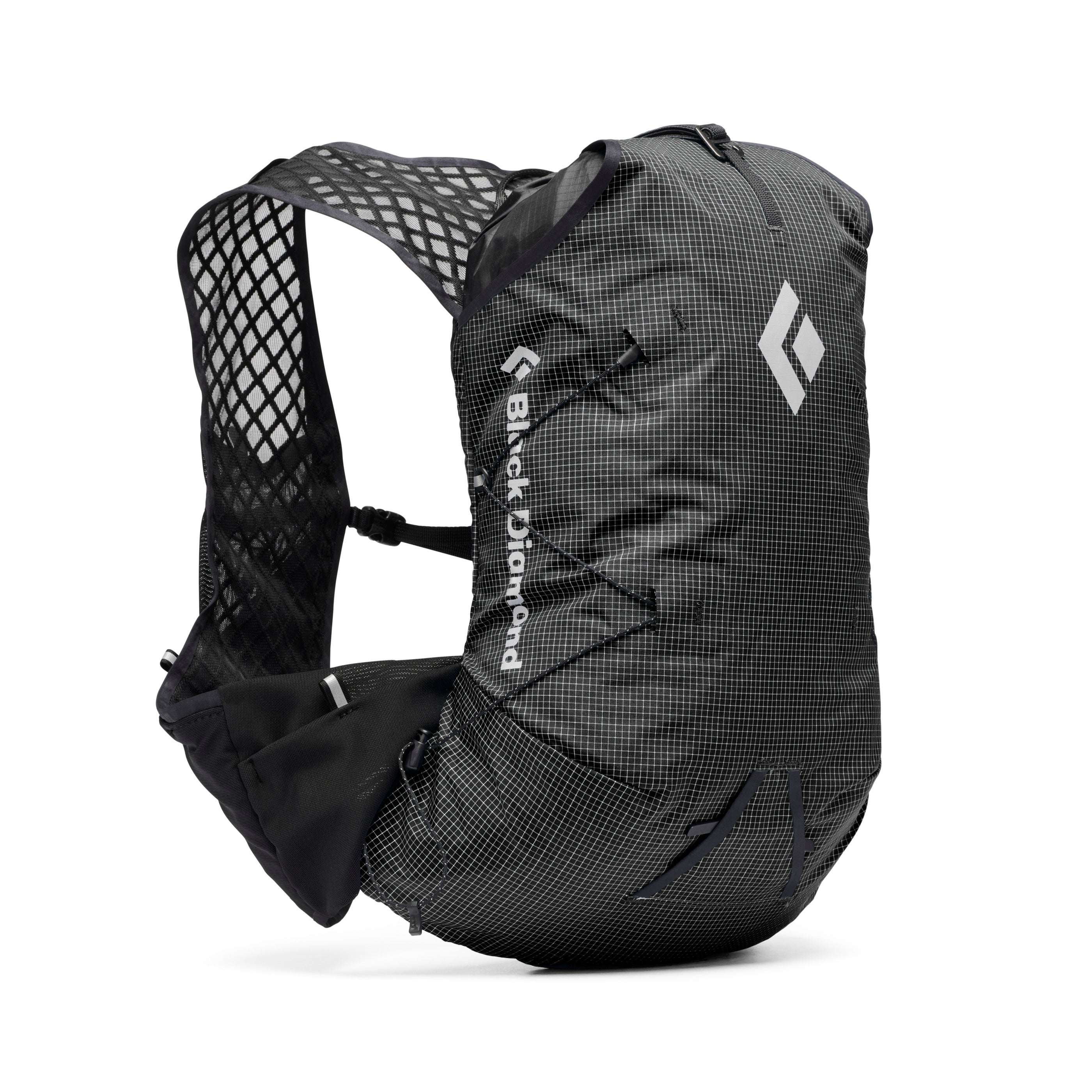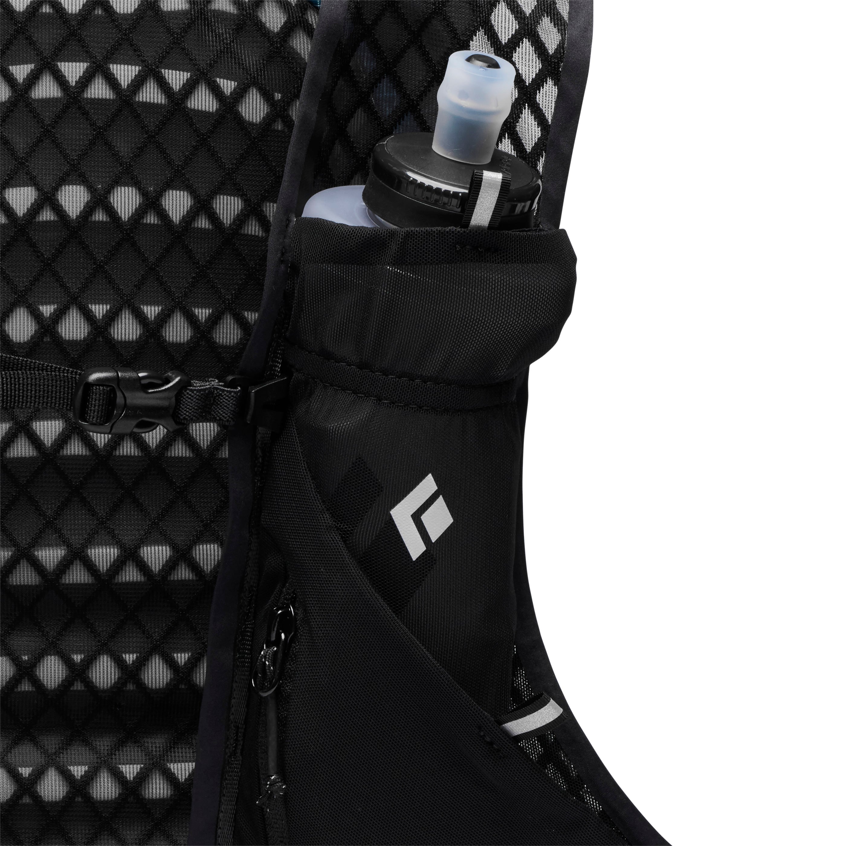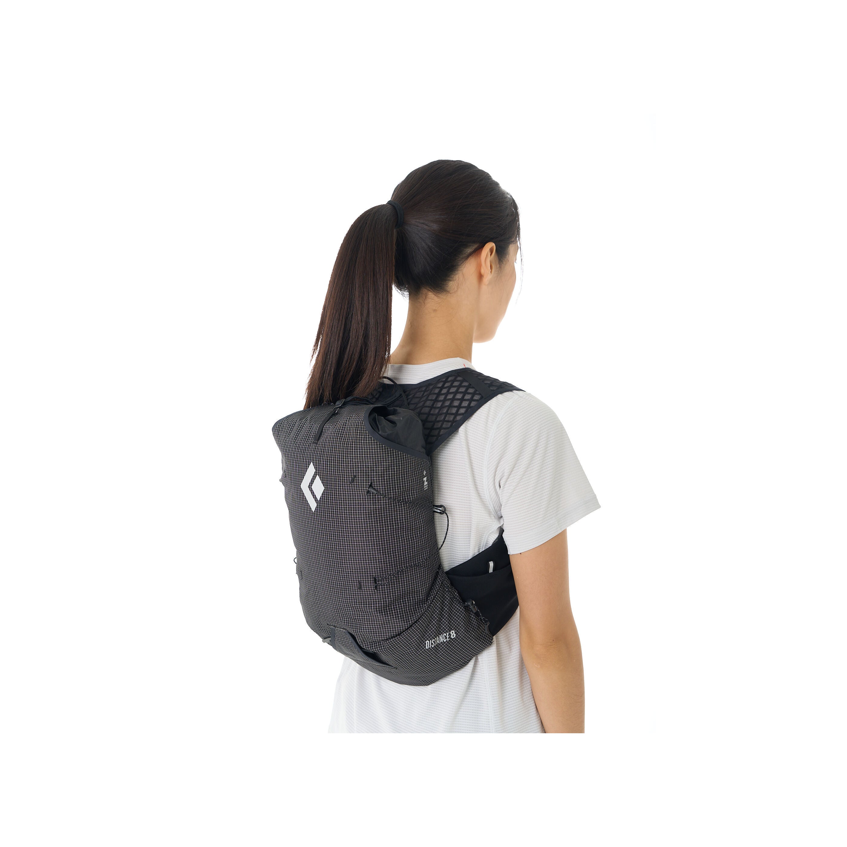 It's entirely unique harness system moves with you with stretch mesh “wings” that extend from the back panel along the sides to provide a secure and chafe-free fit. A women’s specific fit accommodates shorter torso lengths with shoulder strap shaping that focuses on curvature and width at the neck to ensure all-day comfort. The Women’s Distance 8L features smooth edge binding and soft, breathable, custom engineered diamond mesh for next-to-skin comfort. Easy to use Z-Pole storage can be deployed on the move, while dual side compression allows you to modify carry capacity as you go. Finally, soft-flask holsters securely hold your soft-flask in place, and the front pockets provide secure storage. The Distance 8L has an internal zip pocket, side stretch stash pockets, and a single zip pocket on the shoulder strap.