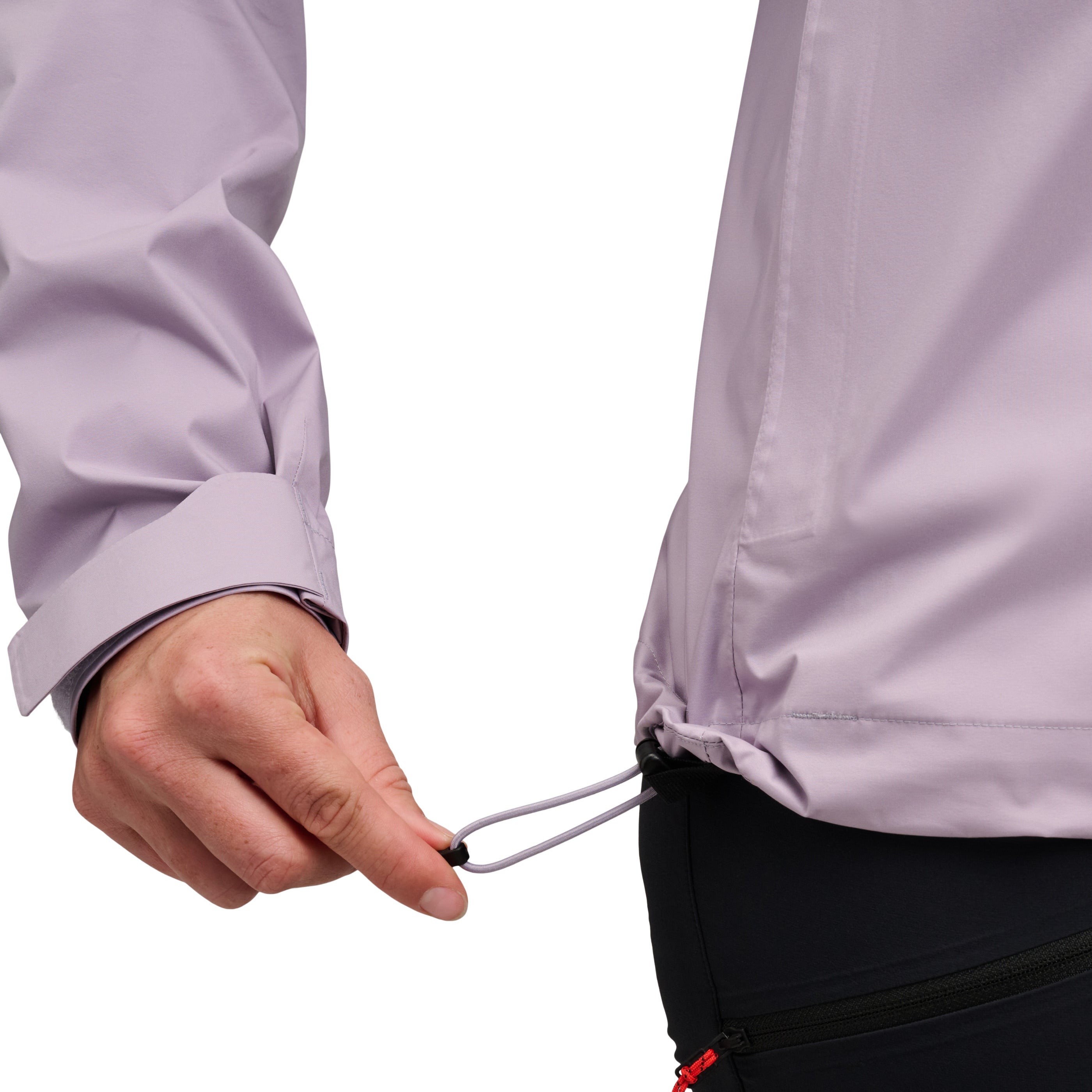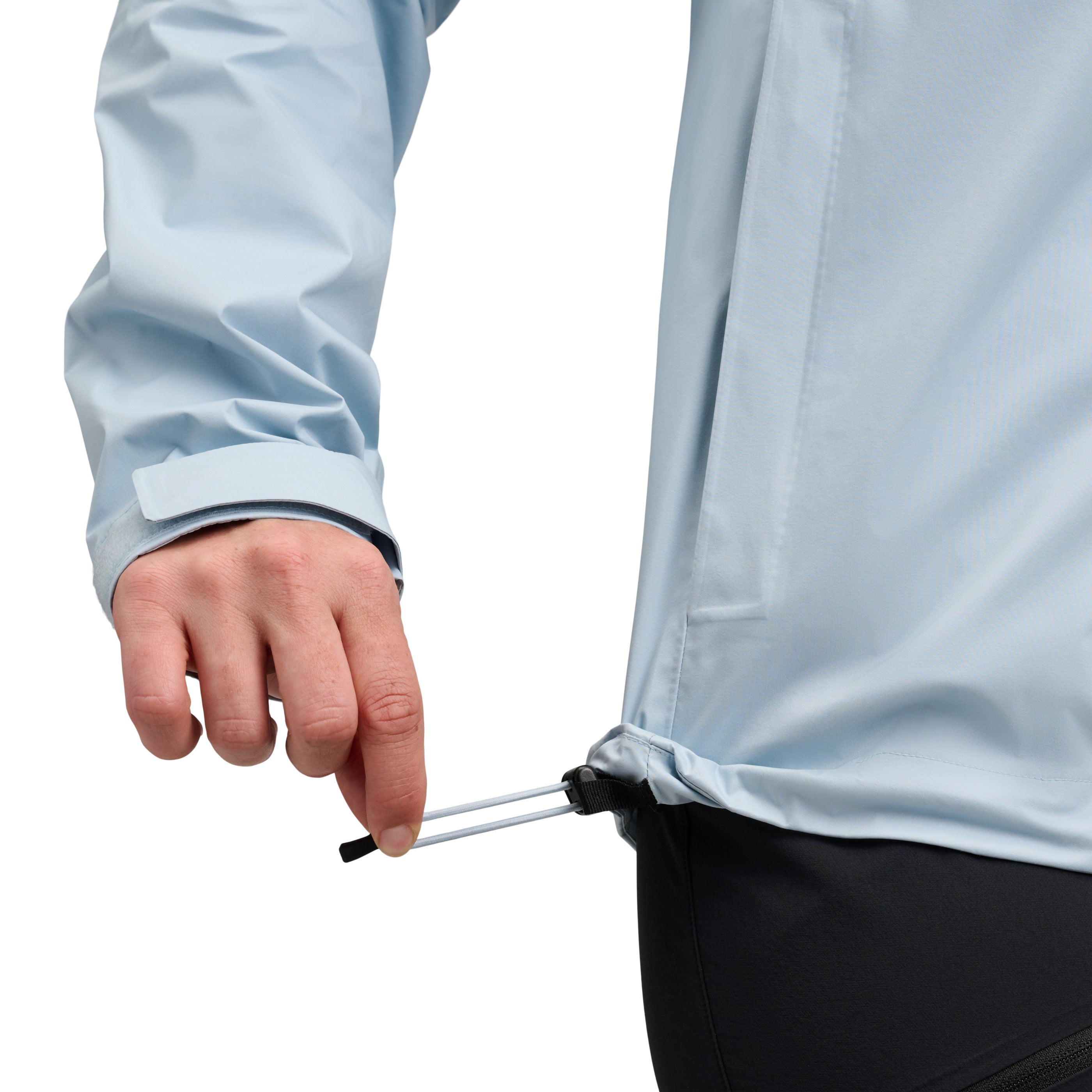 Waterproof. Breathability. Durability. Our 2.5L jackets are made up of three parts: a face fabric treated with a DWR without intentionally added PFAS finish that sheds water; a microporous membrane that goes on the inside and stops percipitation from penetrating; and a half layer print that goes on the inside of the membrane, right next to your skin keeping it dry and comfortable. BD.dry 2.5L Waterproof rating: 10,00mm Breathability rating: 10,000 g/m2/24h
