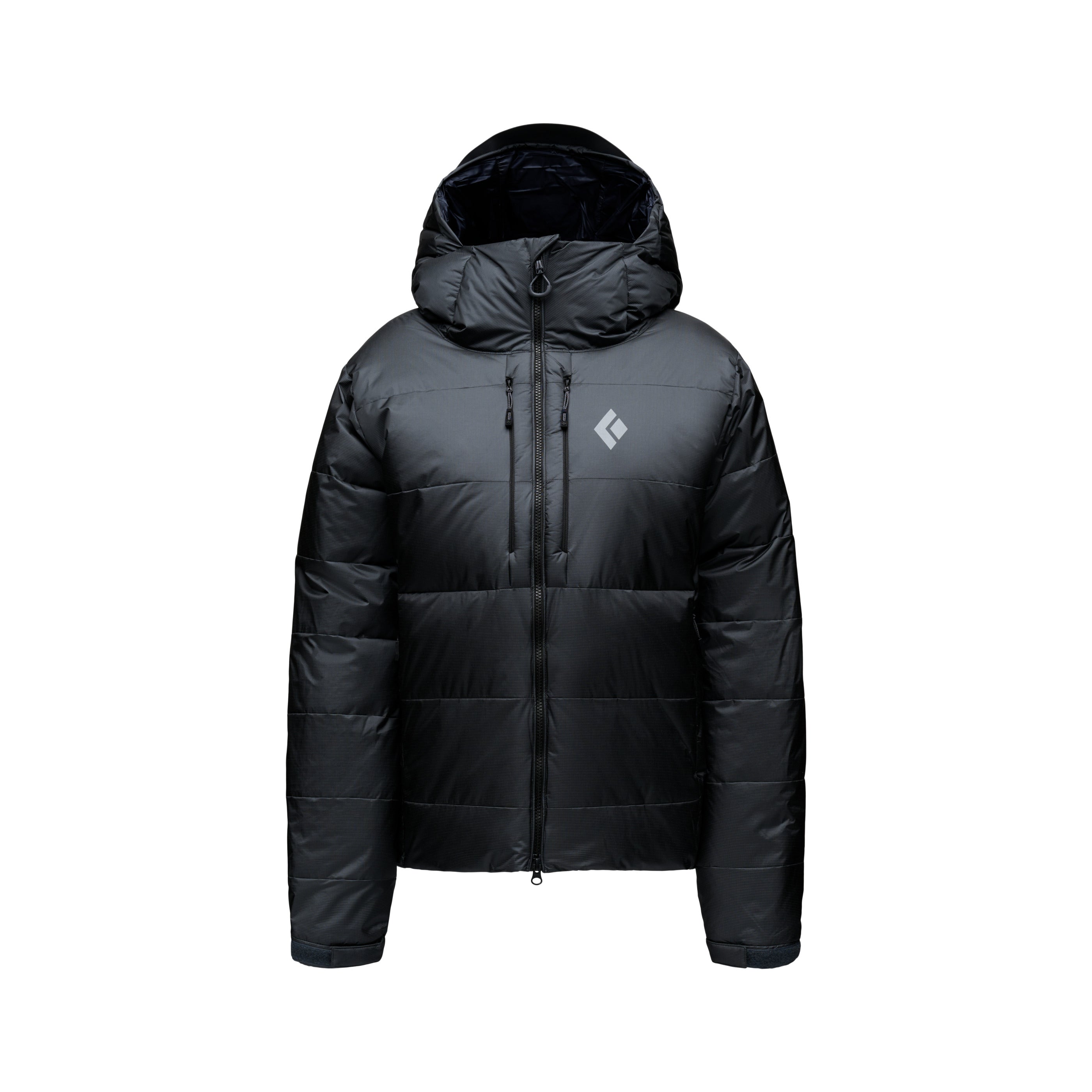 Revolutionary liquid crystal polymer ripstop shell fabric is doubled up for ultimate durability and weather resistance, while high-loft 800-fill goose down is packed in to provide unmatched warmth. The adjustable, insulated hood seals in warmth while wearing a helmet, and the two-way front zipper allows access to your belay device. Oversized hand, chest, and internal drop pockets store gloves, water bottles, and other climbing essentials.