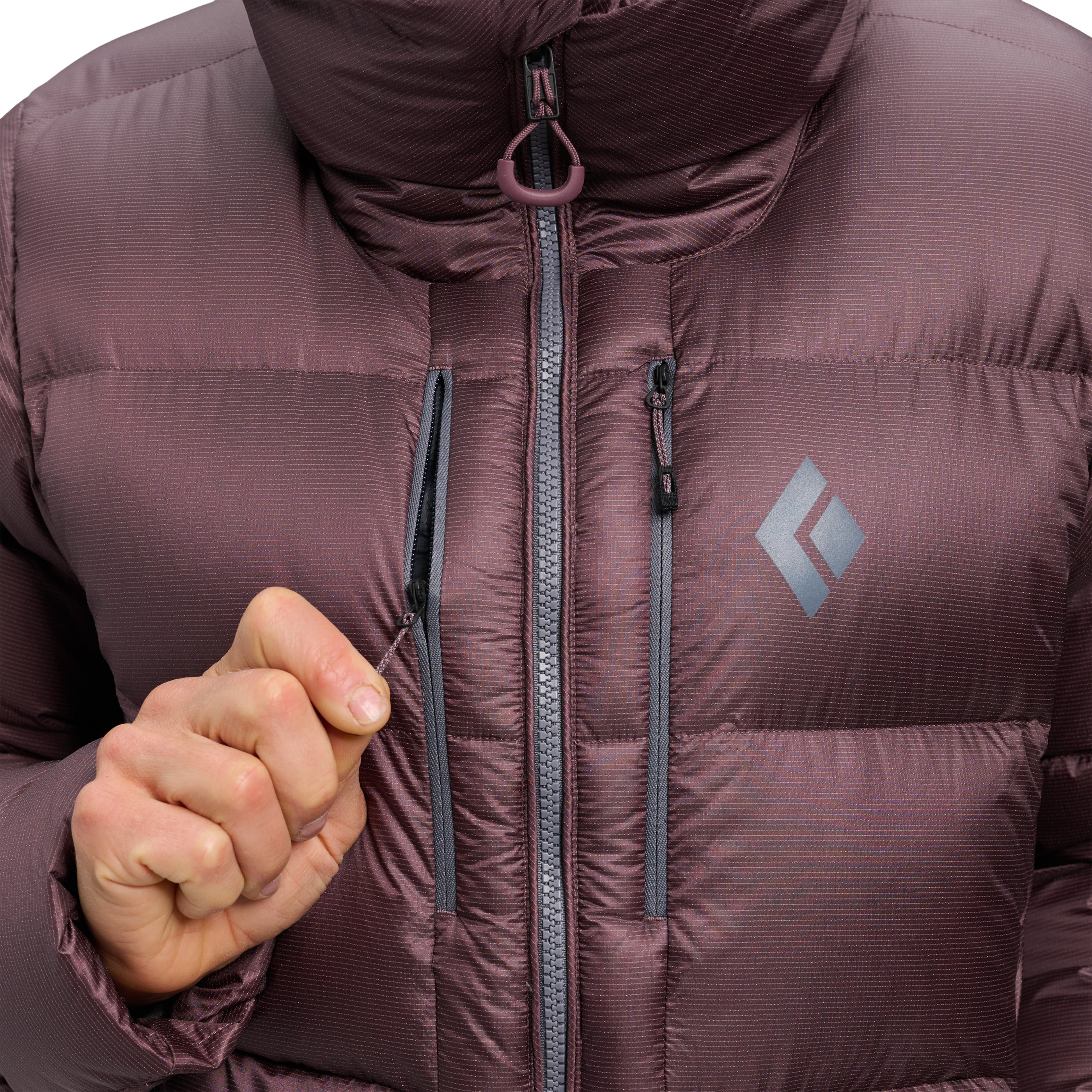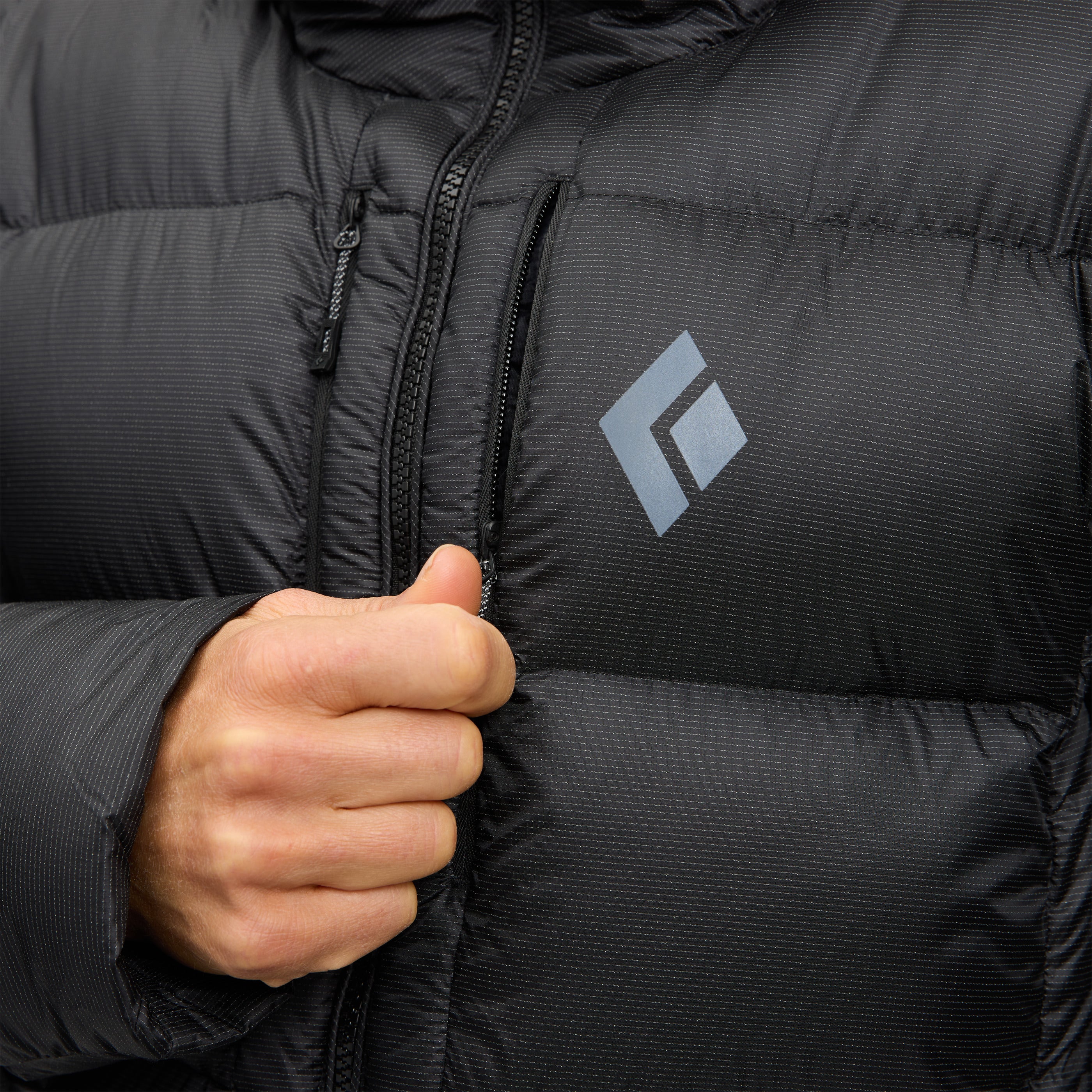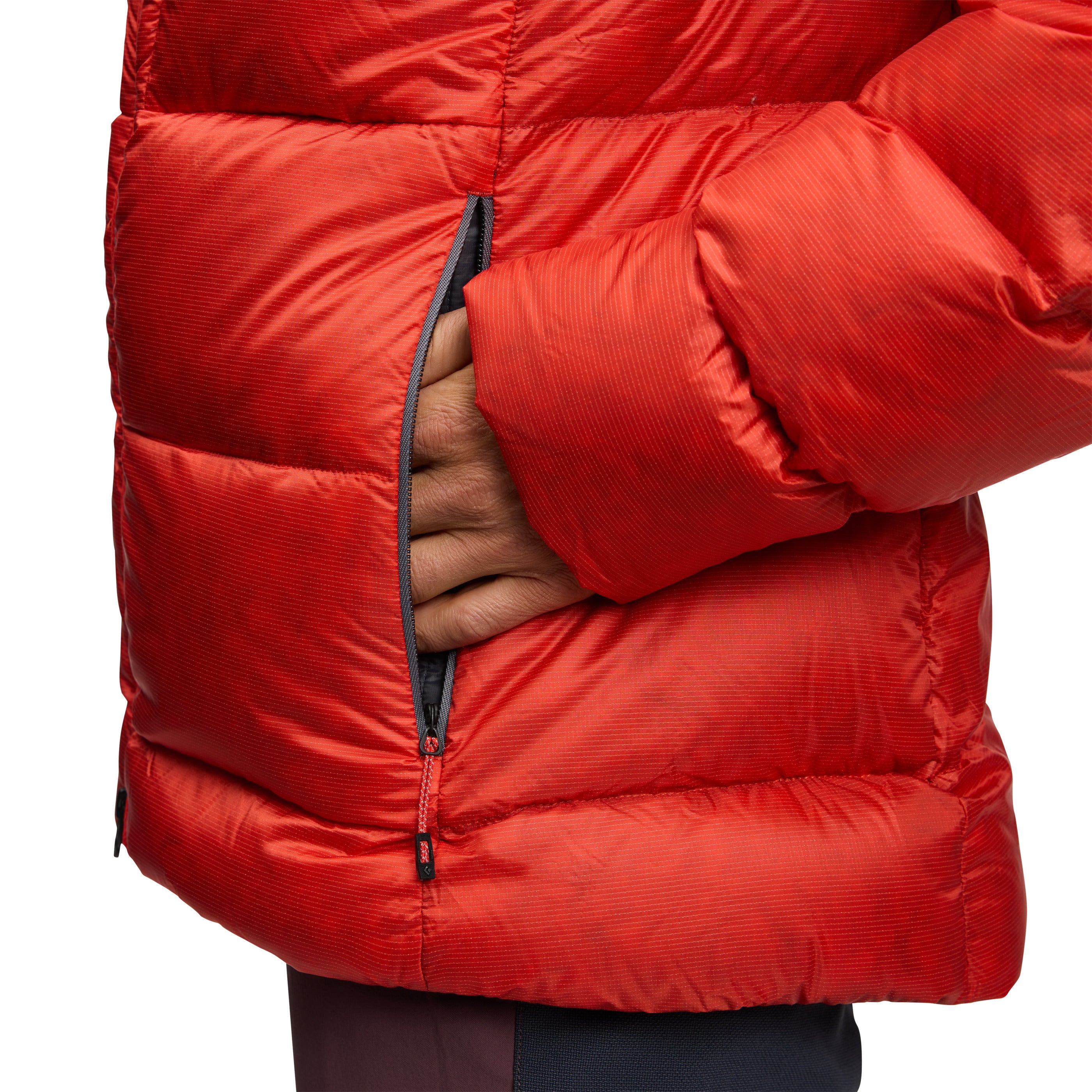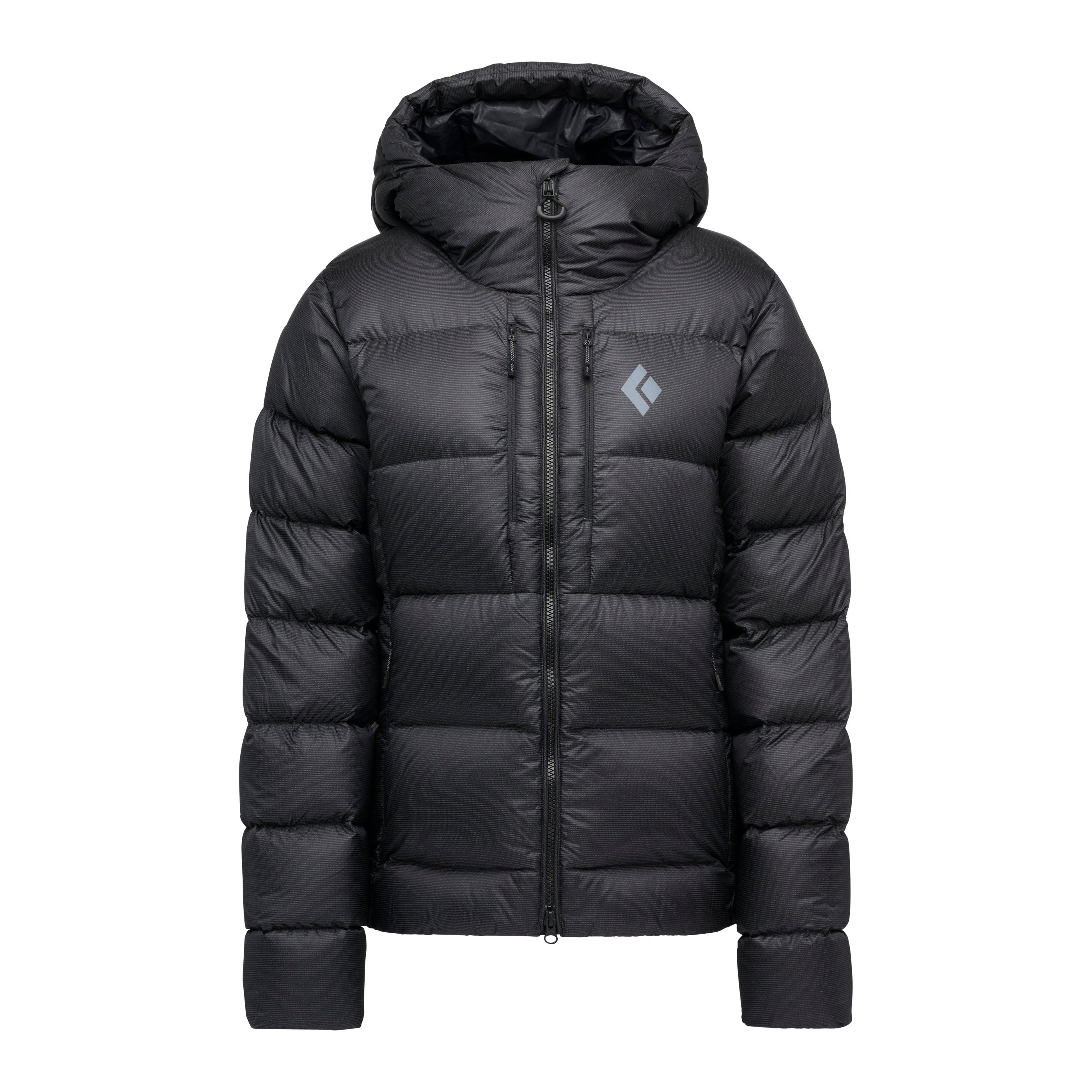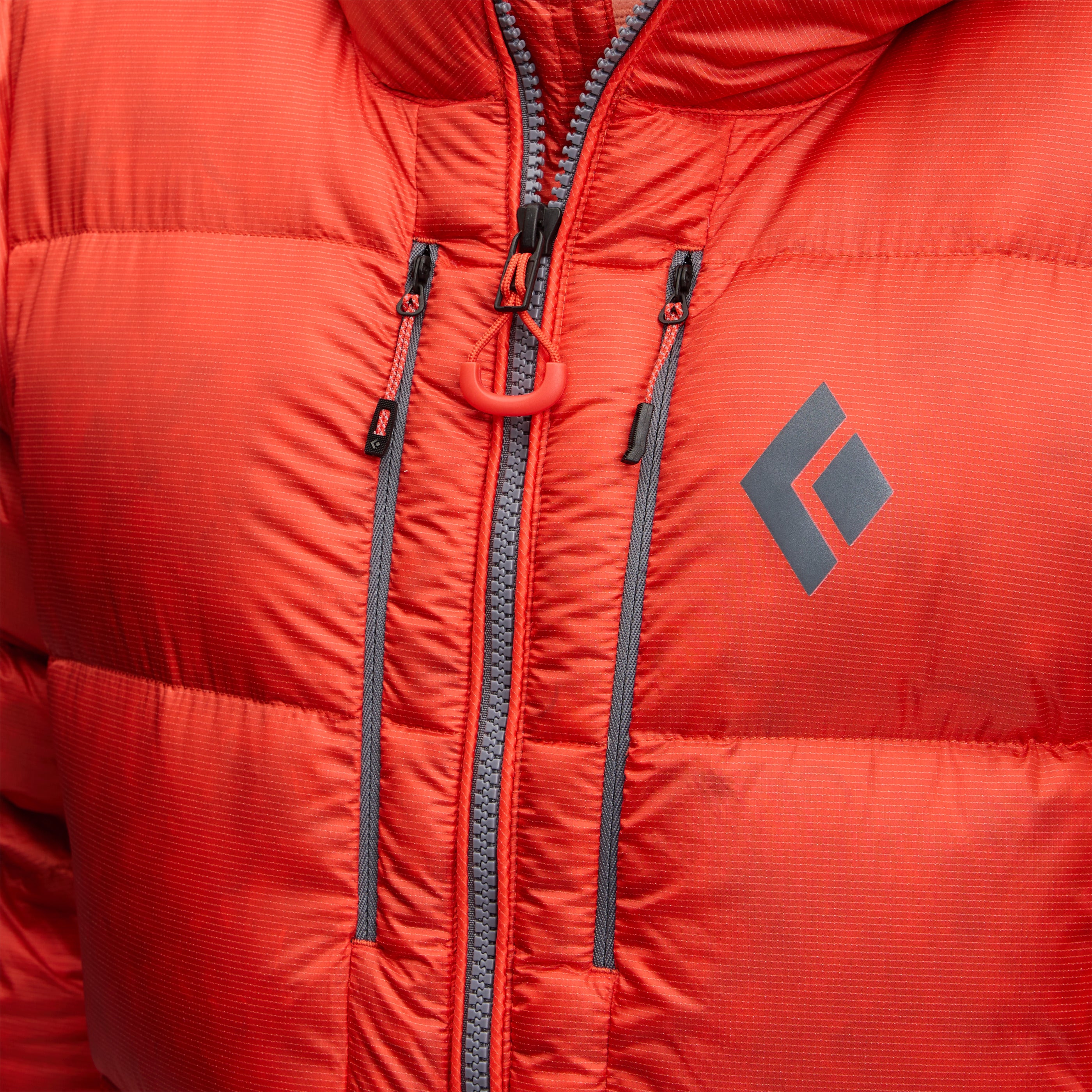Packed with high-loft, 800-fill down, and featuring proprietary liquid crystal polymer ripstop shell fabric for ultimate durability, this burly parka packs serious warmth and weather resistance. The adjustable insulated hood seals in warmth while wearing a helmet, while the two-way front zipper allows easy access to your belay device. Oversized hand, chest, and internal drop pockets store gloves, water bottles, and other essentials while braving the elements.